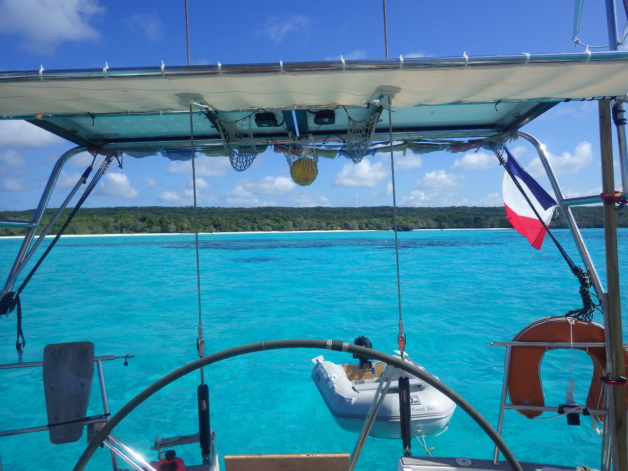 Puis nous levons l’ancre pour Nouméa à environ vingt-cinq milles, au largue avec un petit zéphyr à une dizaine de nœuds sur une mer plate. Zéphyr qui décide finalement de se la couler nonchalamment tropicale, obligeant à sortir Volvo de la torpeur dans laquelle il s’était coulé.