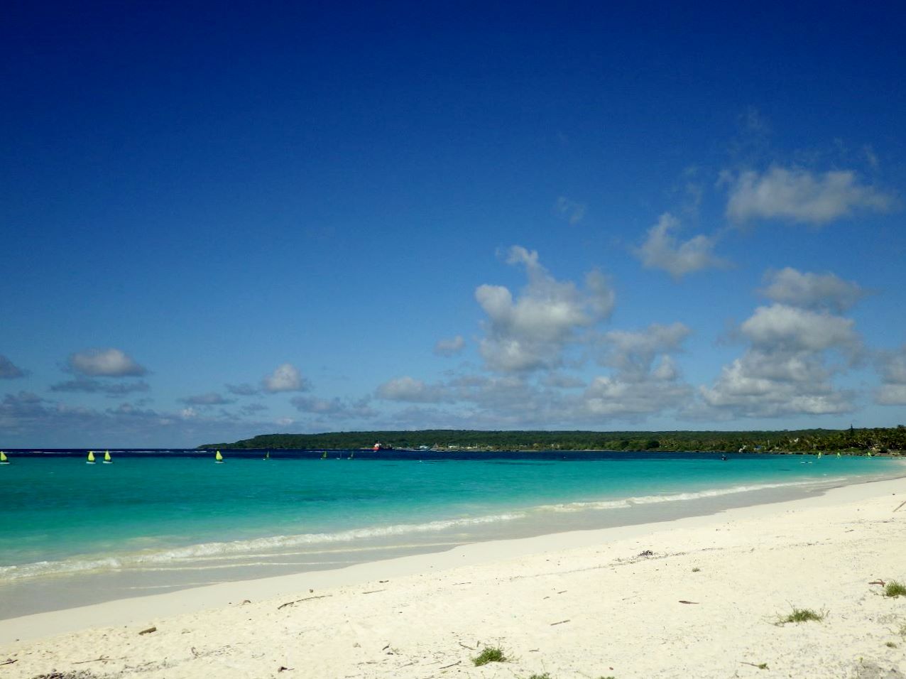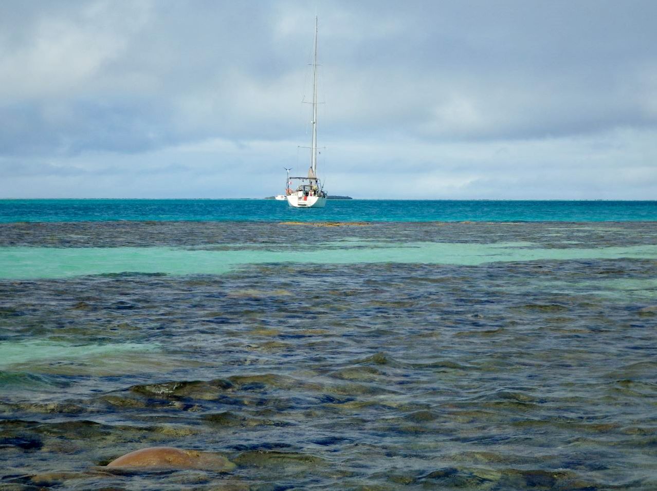 Une fois la passe franchie, et un petit slalom entre les patates, très visible sur le fond de sable, nous arrivons à un superbe mouillage dans quatre à cinq mètres d’eau, à moins de deux cents mètres d’une belle plage.