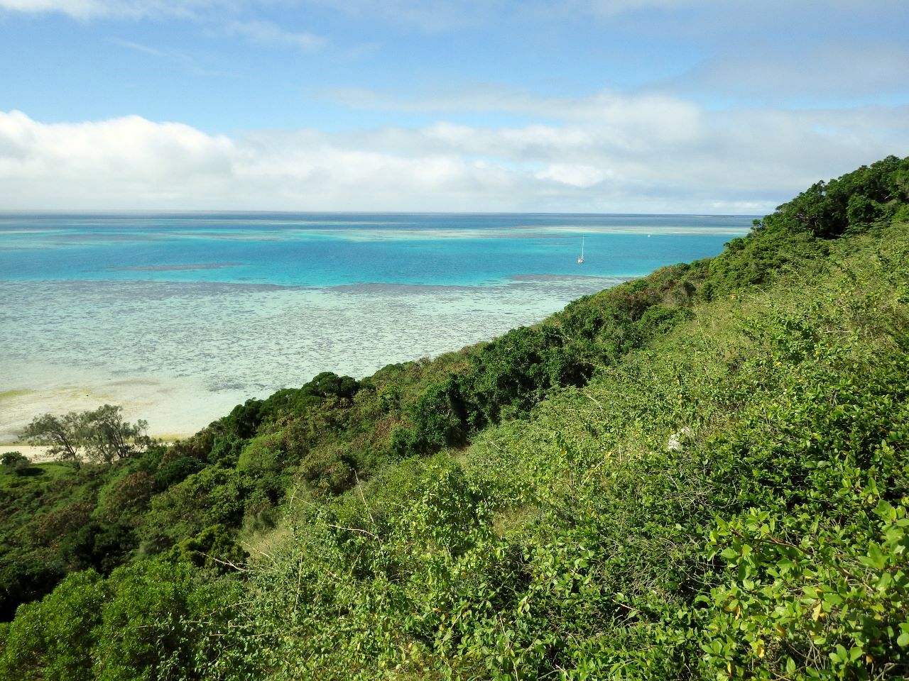 Le sommet de l’îlot est gravi par un bon sentier, et offre une superbe vue sur le lagon.