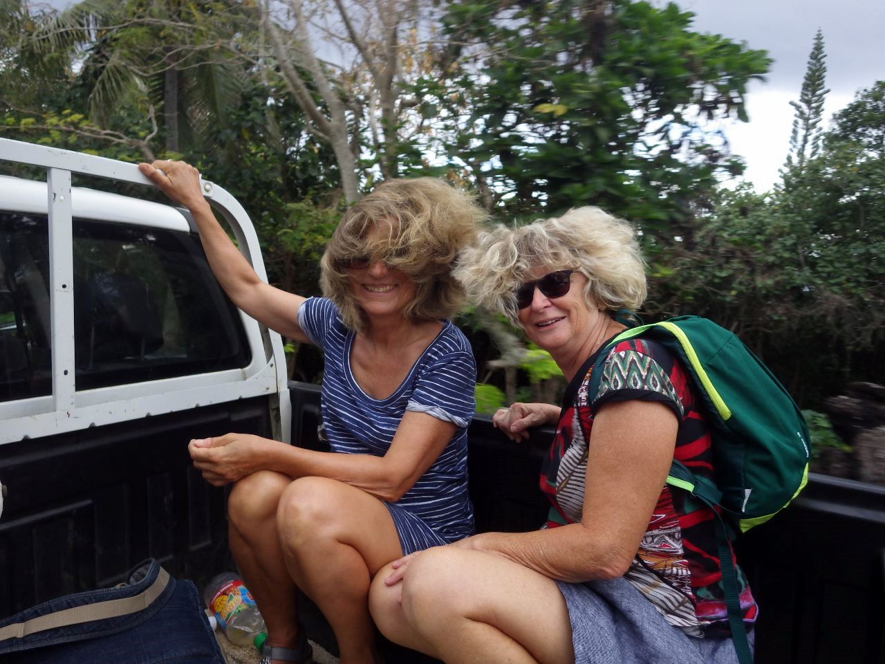 Au retour, pouce à nouveau, et un pick-up s’arrête : « Vous allez à Tadine ? Montez ! Et excusez-moi : je suis un peu éméché… ». Effectivement, notre chauffeur a l’haleine un peu chargée, qui ne sent pas que la pomme. Mais il conduit doucement et tout se passe bien.
