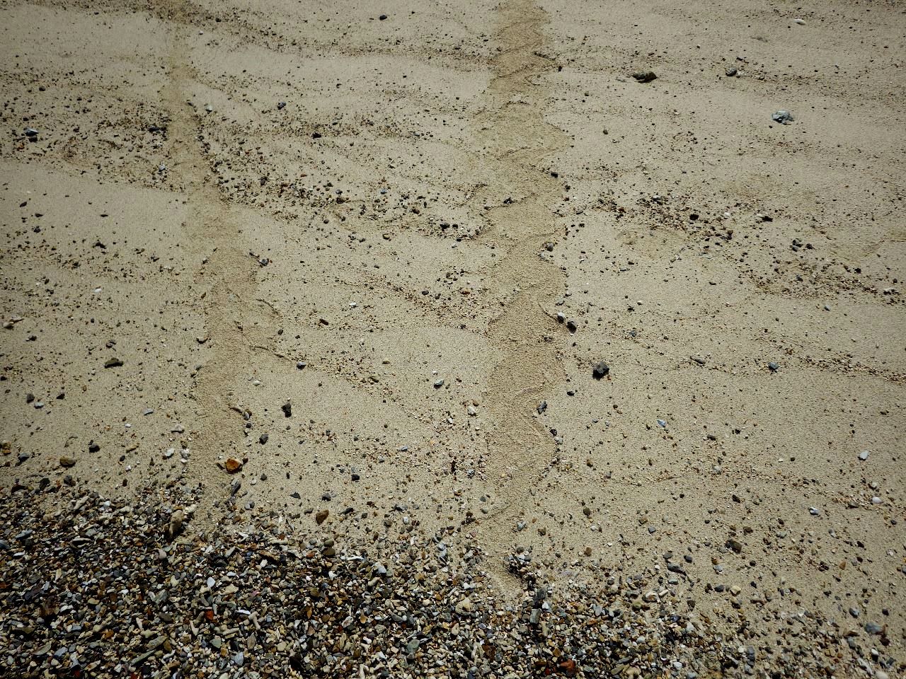 De retour sur la plage, ce sont deux traces de ces serpents que nous distinguons, se dirigeant vers la mer.