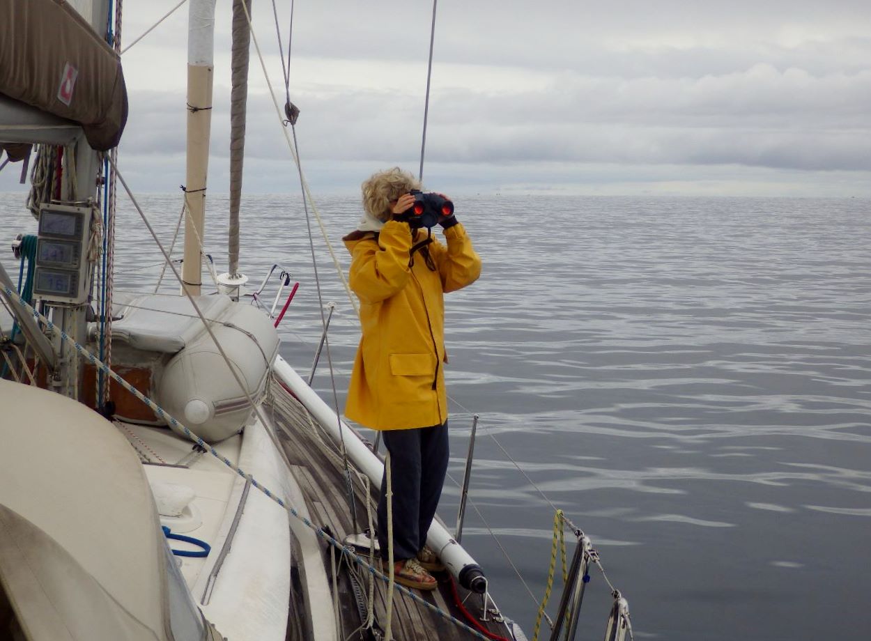 29 juillet : nous partons en milieu de nuit pour couvrir les soixante milles avant la passe, et y arriver de jour à marée montante. La mer est relativement calme, mais le vent encore plus : la traversée se fait au moteur. Ça arrive, des fois…