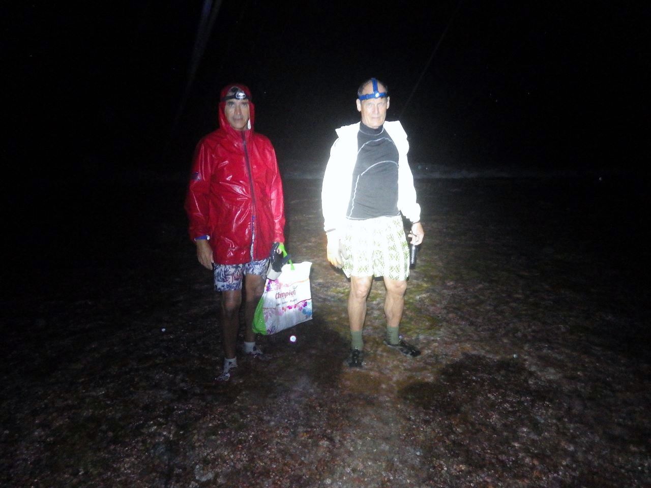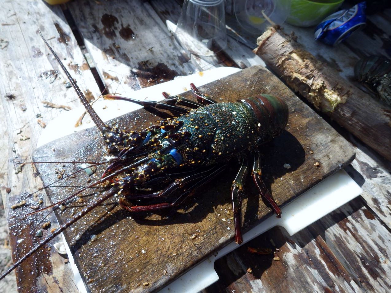 Il faut les repérer dans à peine vingt centimètres d’eau : leur couleur fait qu’elles se confondent avec le fond. Mais leurs yeux brillent en rouge avec les lampes et facilitent les prises. Les langoustes se prennent à la main, de préférence avec un gant. Évidemment, comme on est à la bordure extérieure du platier, il vaut mieux que les vagues ne soient pas trop fortes !
