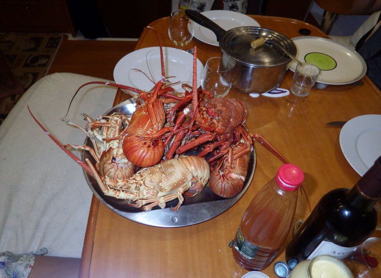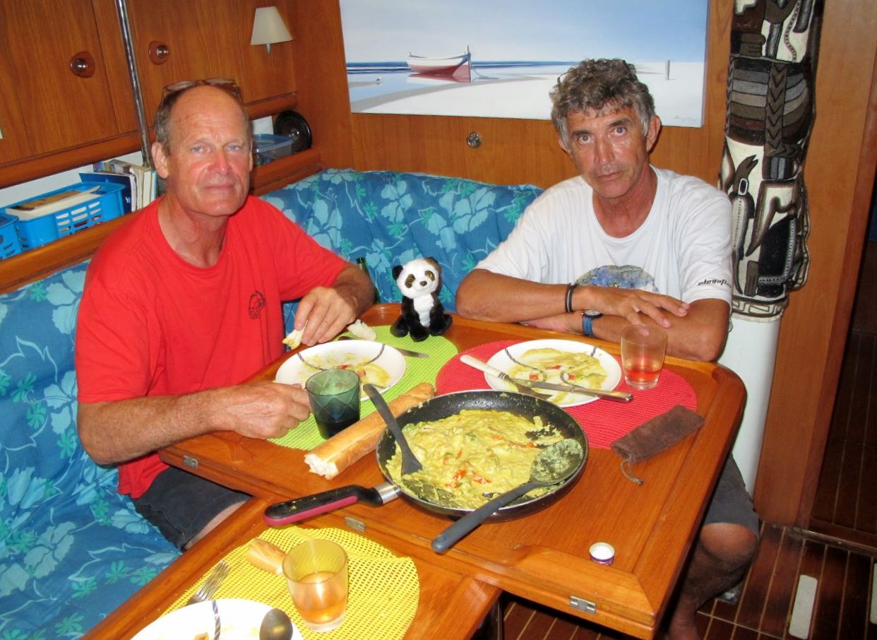 Au mouillage devant Mata Utu.Au mouillage, vu de l’intérieur. Ne cherchez pas: c’est un curry de bonite au lait de coco.
