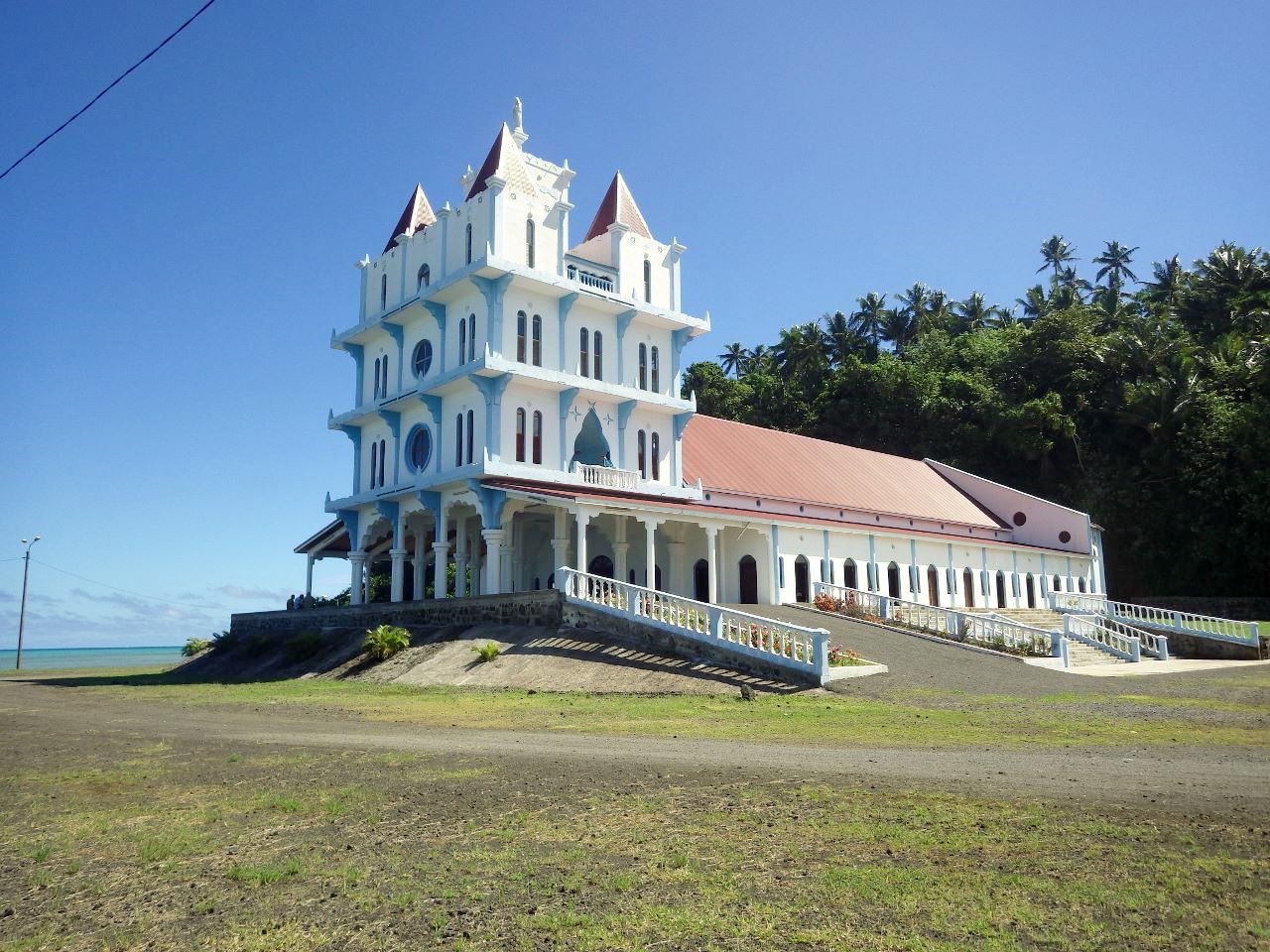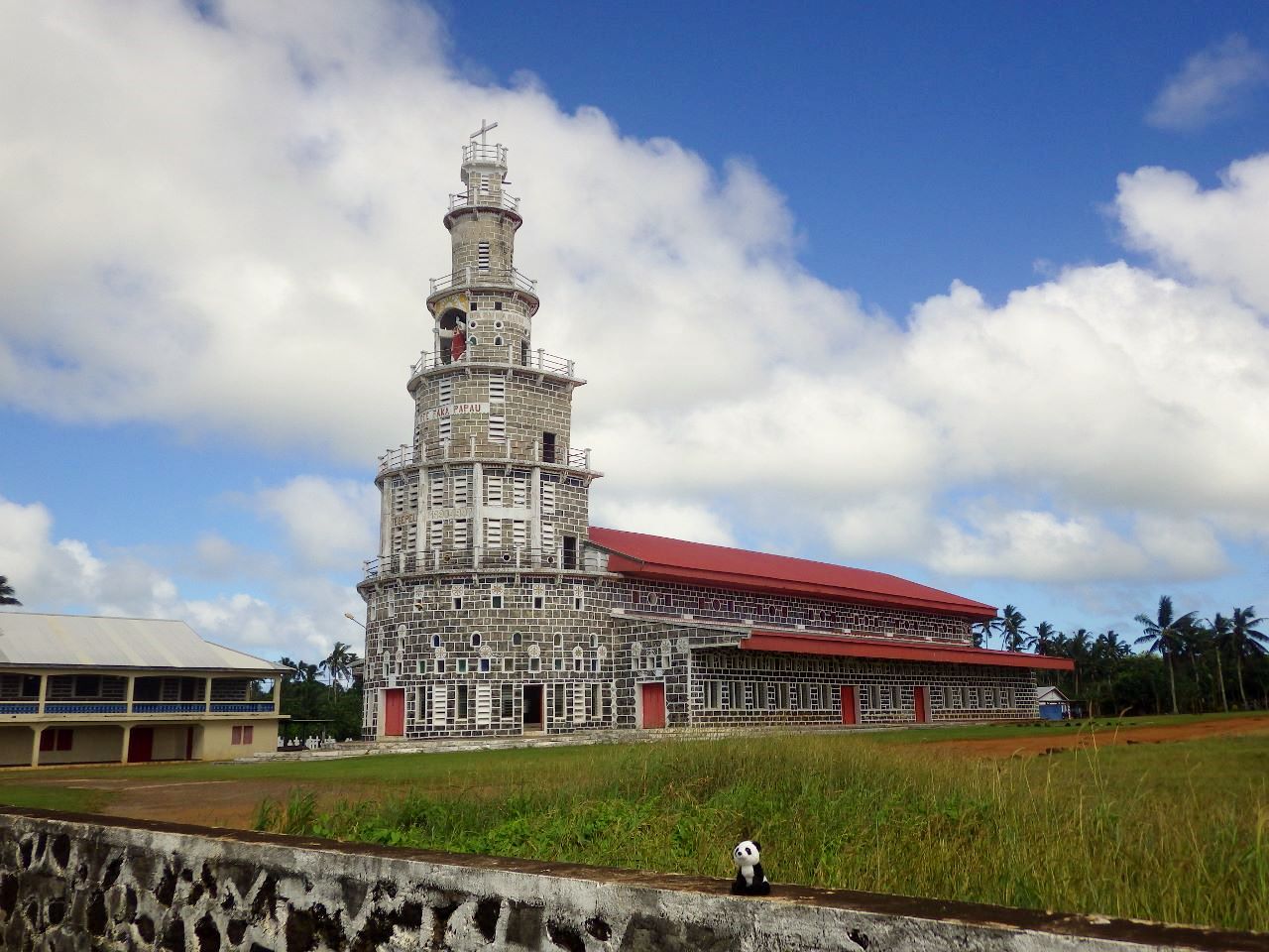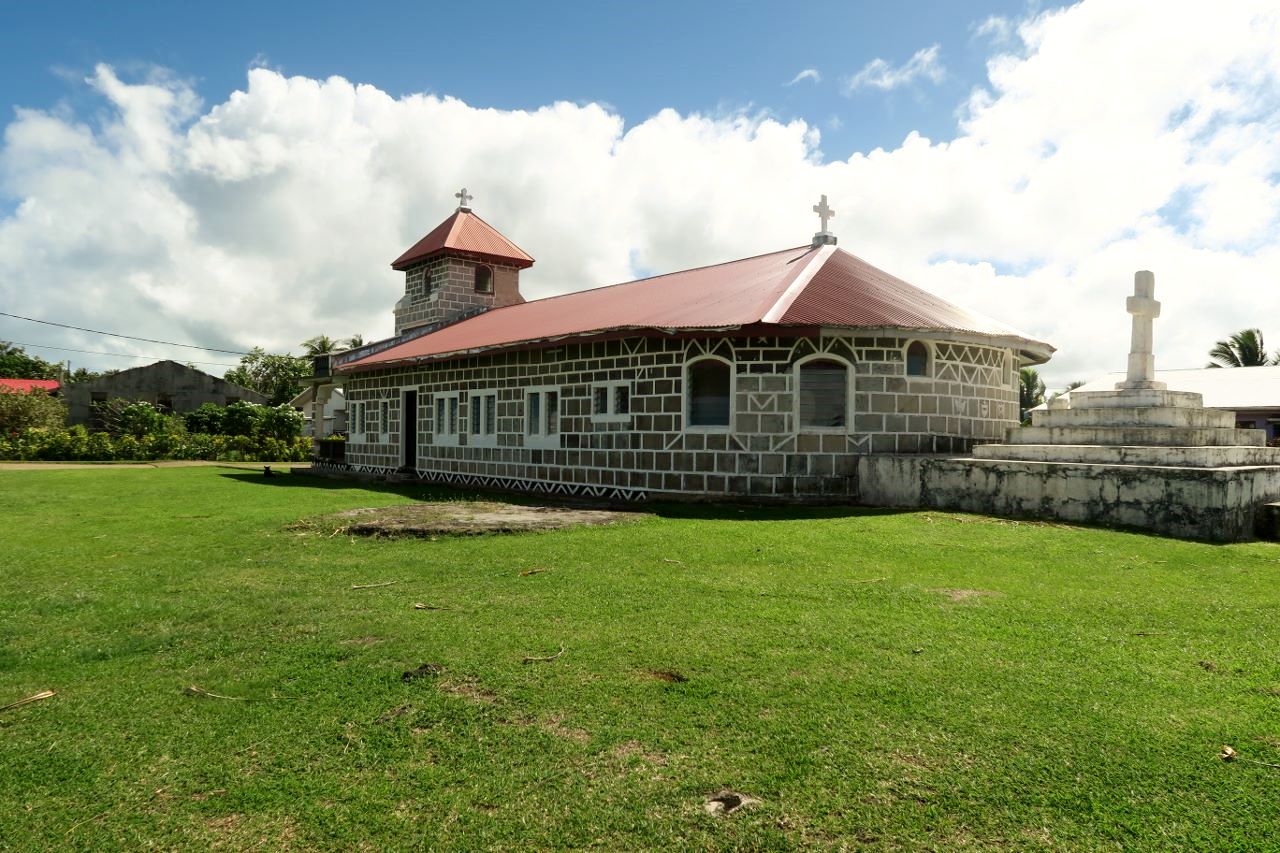 Eglise ou phare? Amer remarquable dans tous les cas.L’église de Vaimalau, autre amer remarquable.
