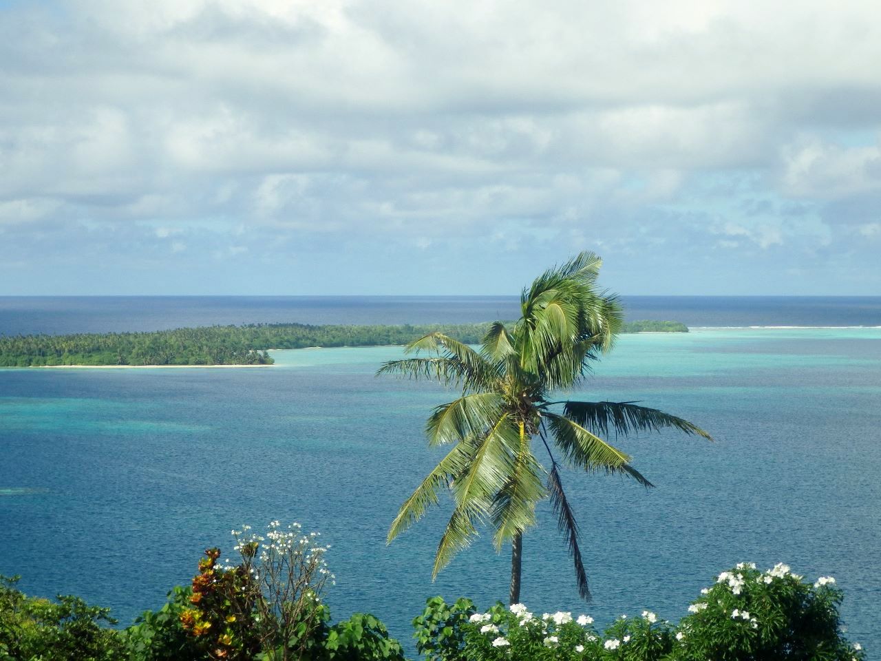 Vue sur le lagon.Autre vue sur le lagon.Et encore…Piste qui traverse l’île.
