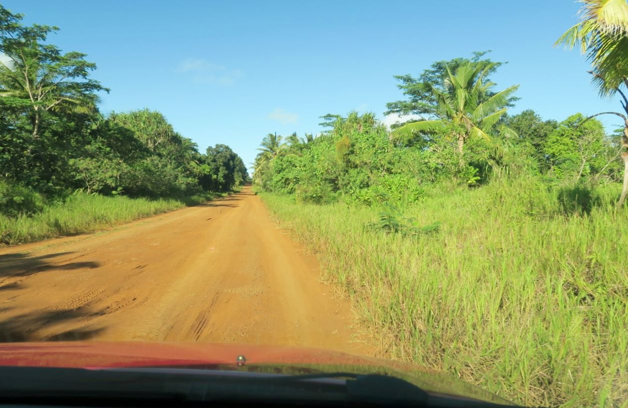 Sur Uvea, il y a deux routes principales, la RT1 et, devinez, la RT2. Courageusement, devant cette complexité, nous décidons de partir sans carte. Première étape : on se dirige vers le sud, en prenant les chemins sur la gauche dès que nous le pouvons, pour admirer le lagon.