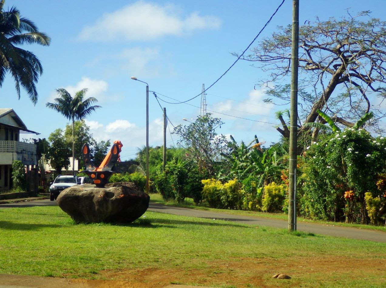 Le mouillage secoue un peu, étant plus exposé à l’alizé, mais il tient bien, et le « centre-ville » est à portée d’annexe. Les formalités sont vite expédiées et nous faisons notre premier tour dans Mata Utu : pas vraiment de centre, les maisons et les bâtiments officiels et commerciaux donnent l’impression d’être un peu éparpillés.