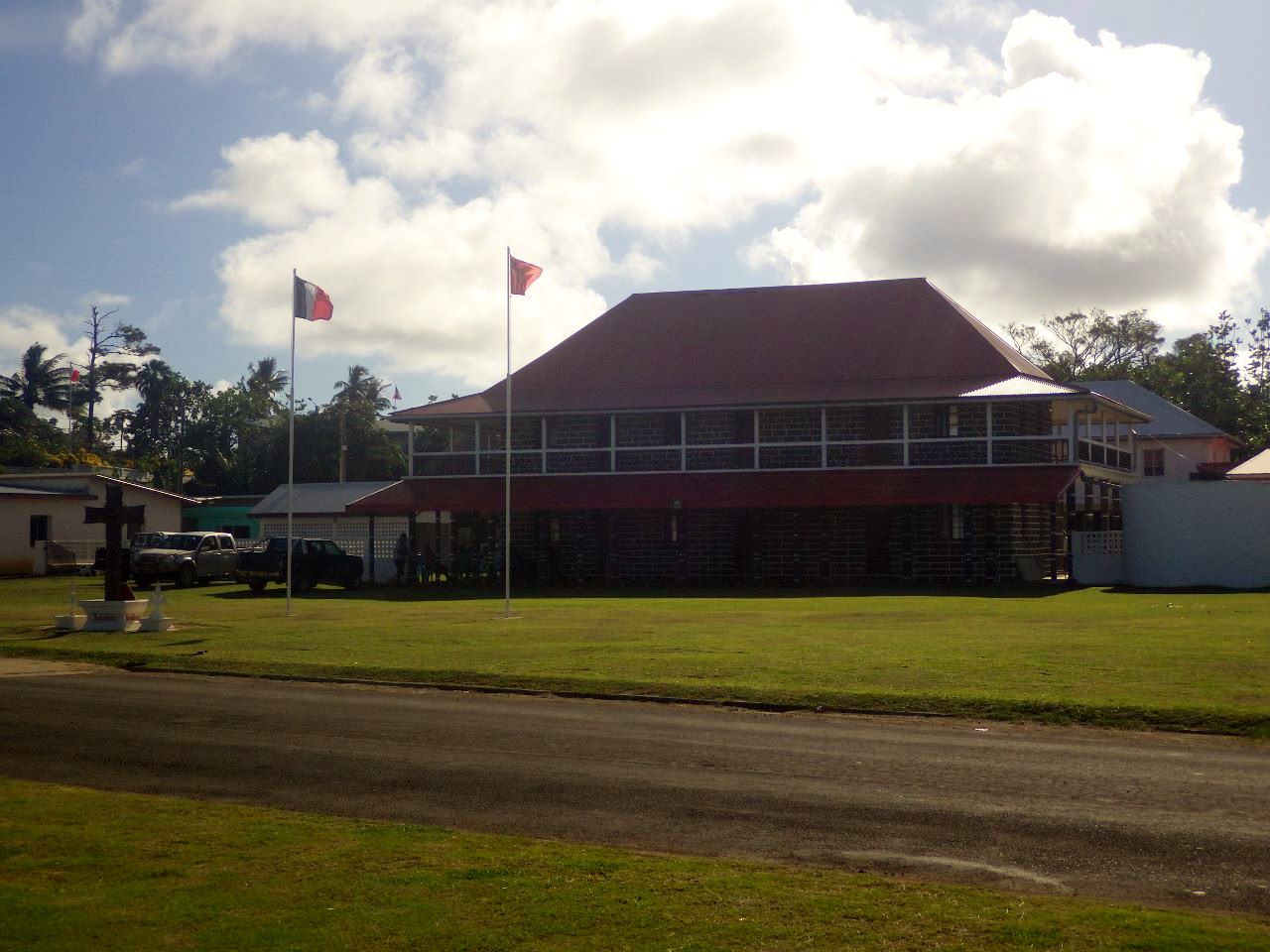 Eh oui : Wallis, environ huit mille cinq cents habitants (gabarit identique aux Samoans), fait partie de la république française, mais le droit coutumier est toujours présent et très fort avec une chefferie incontournable. Un roi est élu par une sorte de conseil des sages dont les membres sont issus des « grandes » familles de l’île, ainsi que ses ministres. Le poids de ce gouvernement parallèle est très fort sur l’ordre qui règne ici.