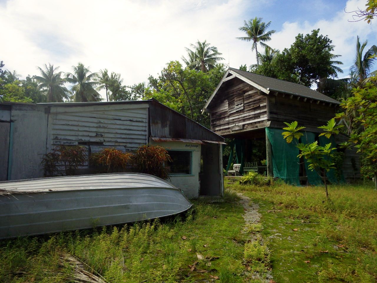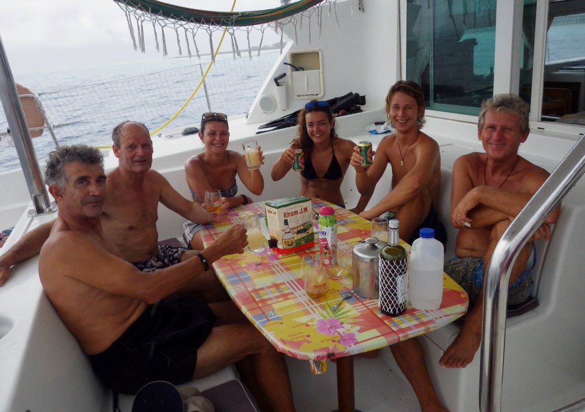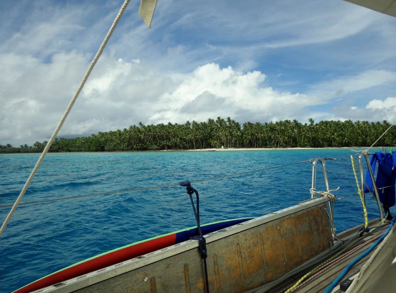 Nous mangeons sous une tonnelle locale à midi : poulet et légumes nous changent un peu du poisson-riz/pâtes de ces derniers jours, même si c’est loin d’être de la cuisine fine. La vie semble un peu moins chère qu’à Tahiti si on peut en juger par les quelques courses que nous faisons.