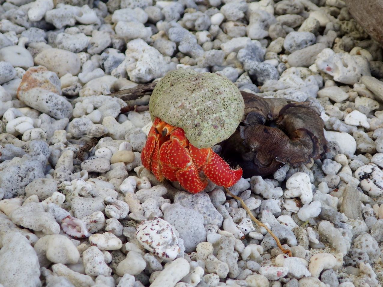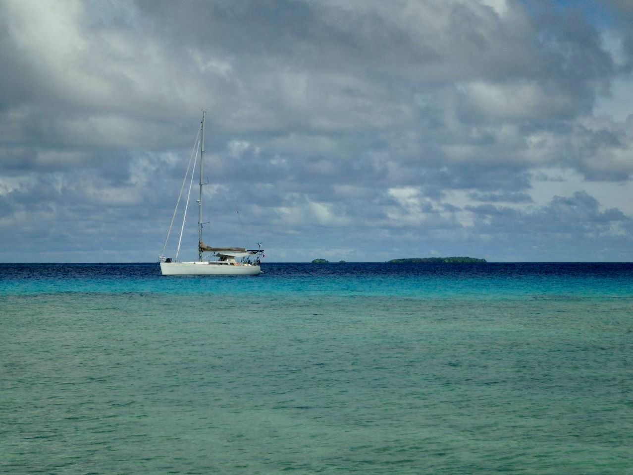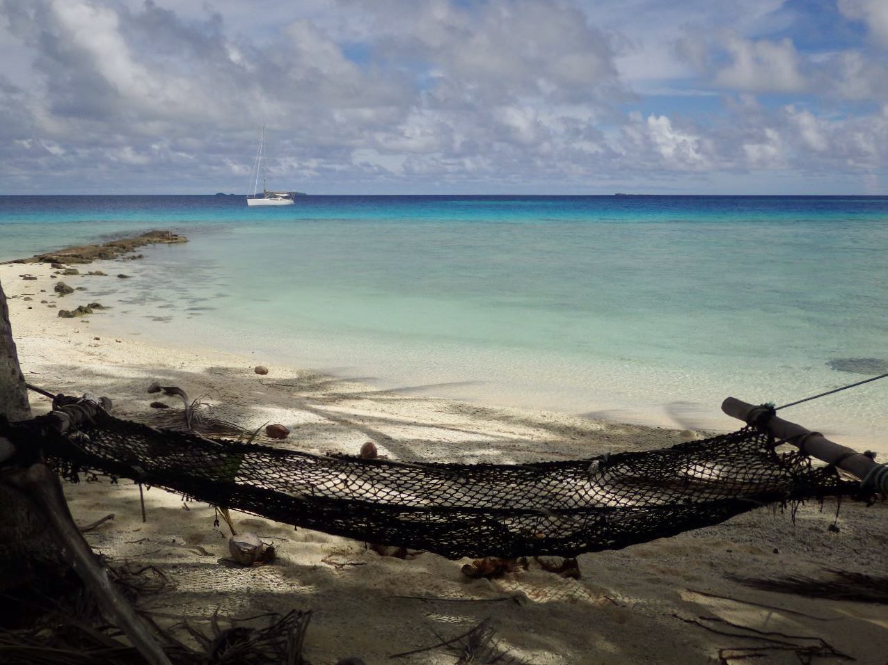 Nous mangeons sous une tonnelle locale à midi : poulet et légumes nous changent un peu du poisson-riz/pâtes de ces derniers jours, même si c’est loin d’être de la cuisine fine. La vie semble un peu moins chère qu’à Tahiti si on peut en juger par les quelques courses que nous faisons.