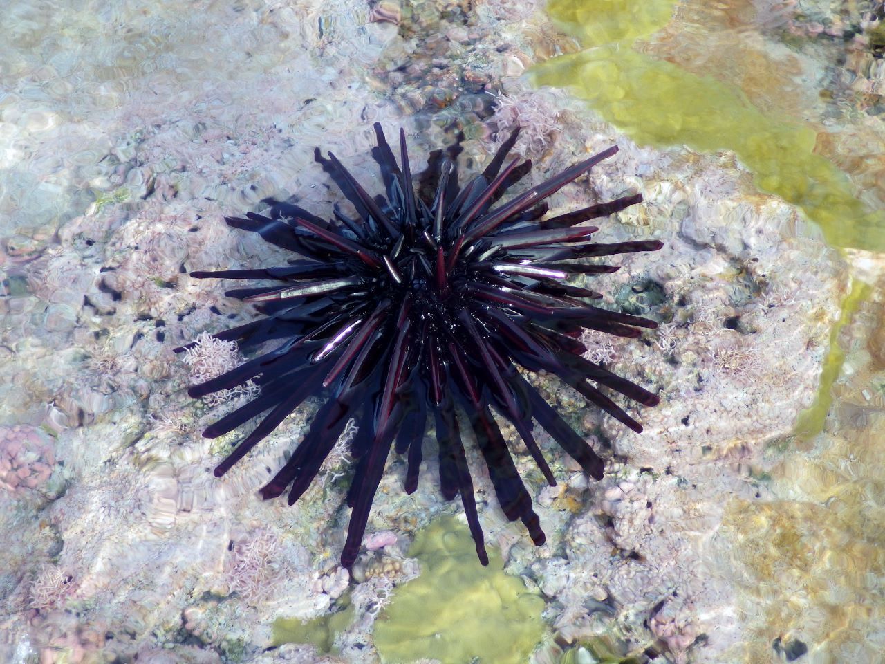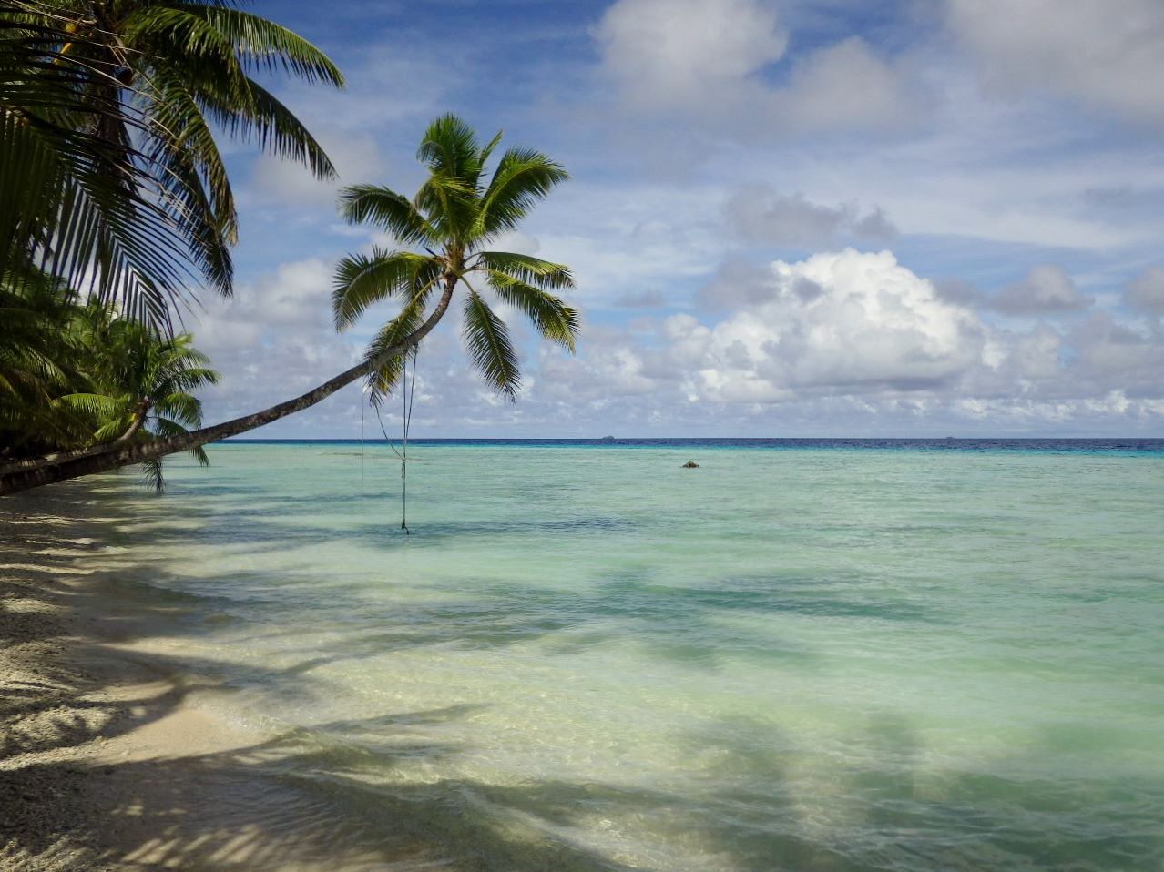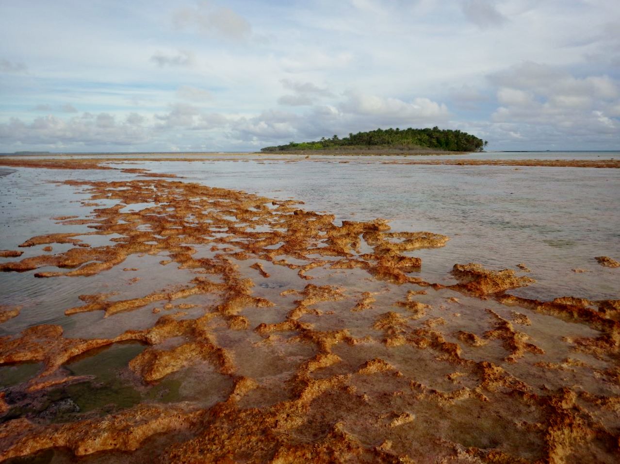 Le long de la côte sud, on aperçoit des restes de pitons de lave posés sur des embryons de platier, généralement avec leurs cocotiers au sommet.