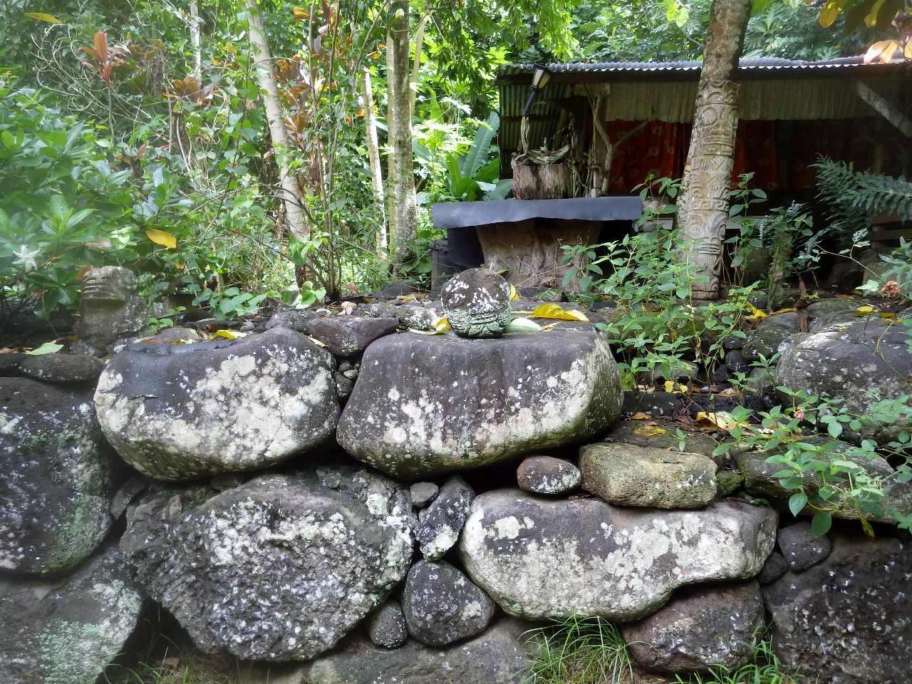 Entre temps, Alexandre nous a expliqué que la petite vallée, abandonnée jusqu’à il y a quelques années, reprenait vie grâce à quelques Marquisiens dont les ancêtres vivaient ici, d’où les nombreuses ruines dans la forêt.