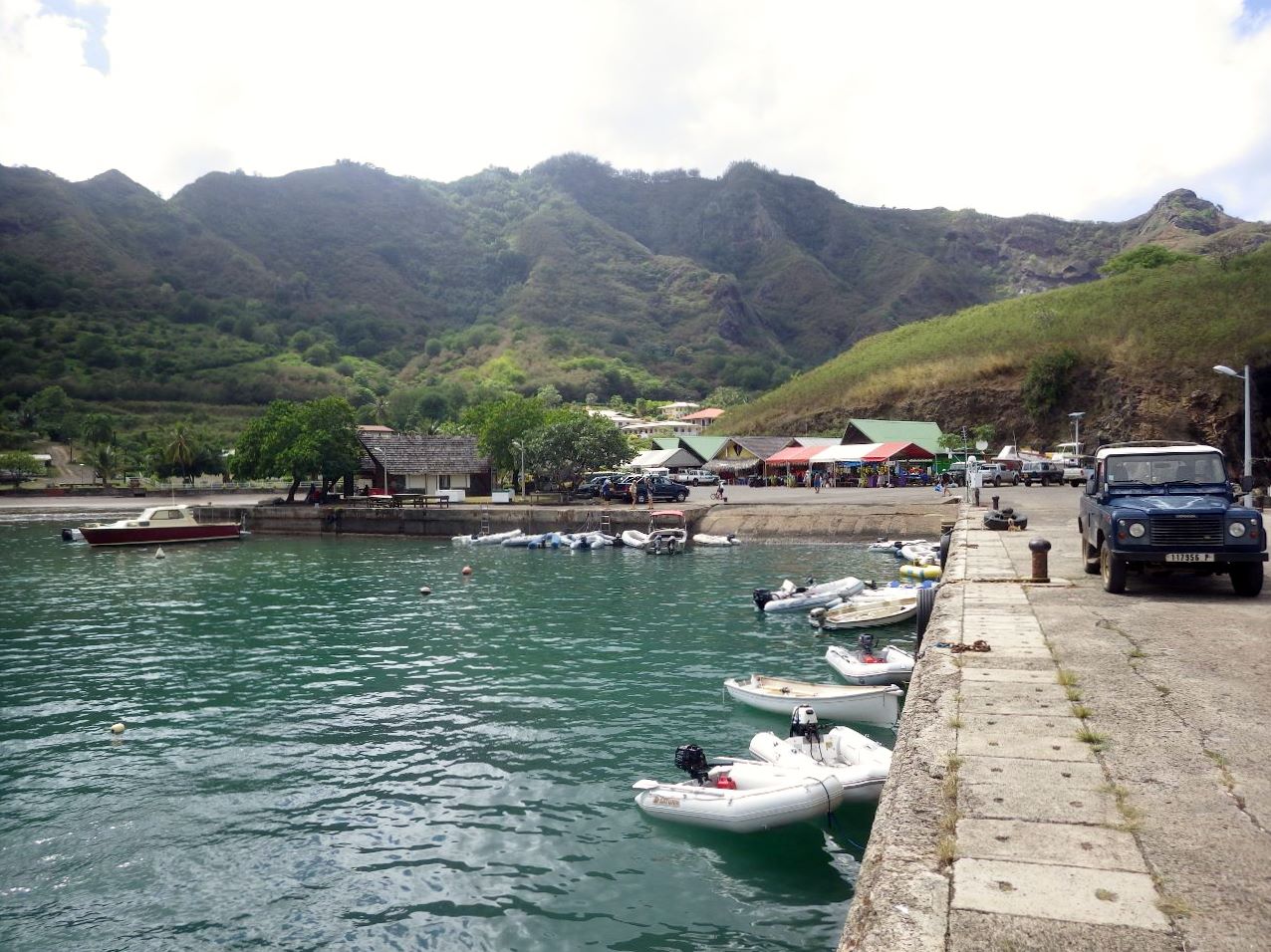 A notre arrivée, il était prévu une réception: Cécilia, la sœur d’une collègue marquisienne, temporairement toulonnaise, d’un ami d’Henry (Ça va? Vous suivez?) devait nous attendre sur le quai. Problème de communication? Personne sur le quai. Pas un collier de fleurs de tiaré à l’horizon… Pourtant Henry nous avait bien préparés à une réception traditionnelle, la fête, des excursions à cheval, des chasses aux cochons et aux chèvres sauvages. Nous, on était chauds!