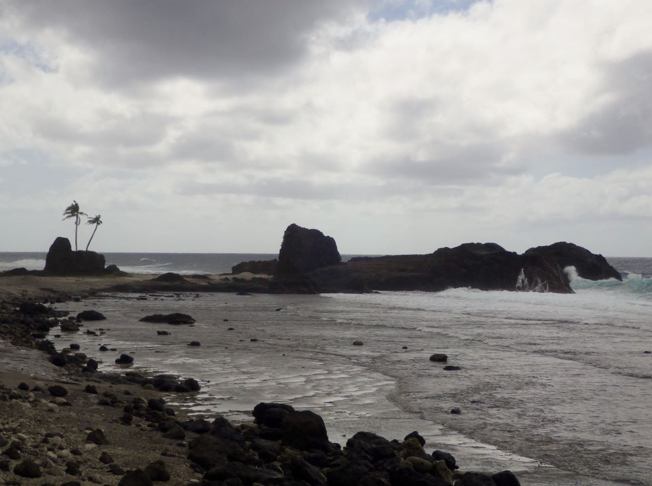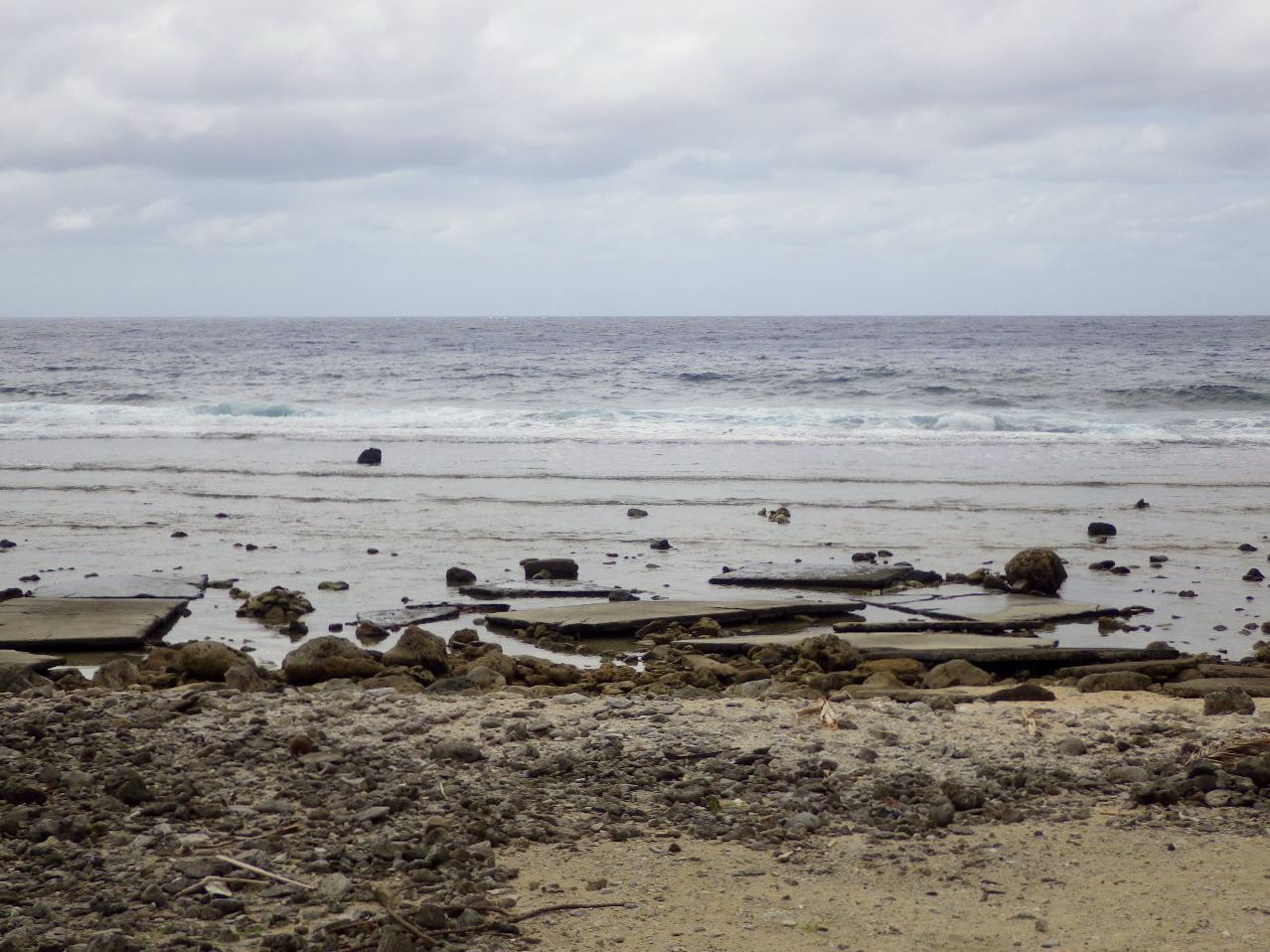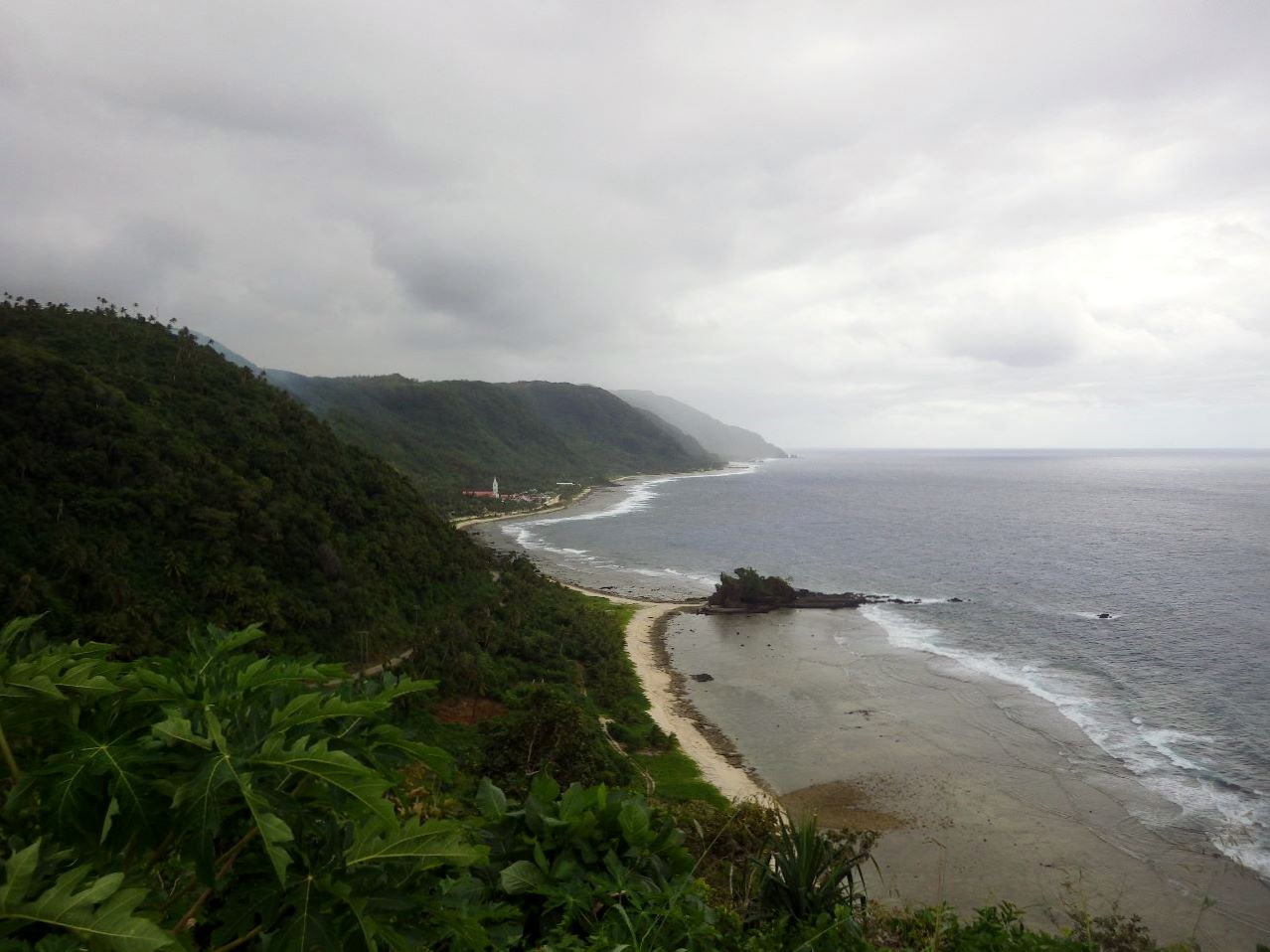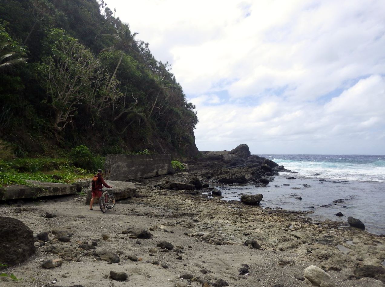 Nous arrivons jusqu’à l’aérodrome à l’extrémité est, en face d’Alofi, et terminus de la route : il fallait prendre un embranchement un ou deux kilomètres avant pour rejoindre la côte nord.