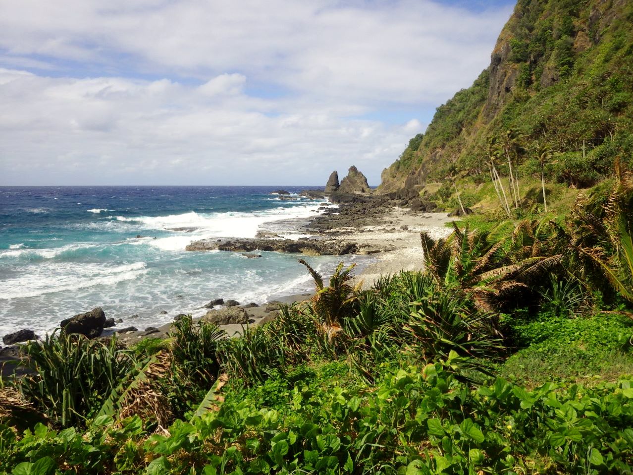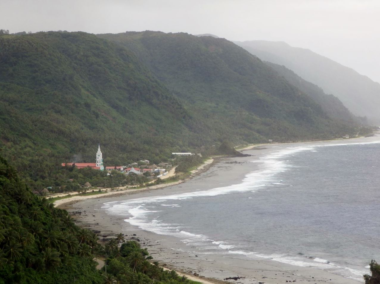 Leava, la capitale, est toute petite, coincée entre la montagne et la mer. Il n’y a que deux mille six cents habitants sur l’île (et un sur Alofi !) qui fait une quinzaine de kilomètres sur cinq. La plupart des villages se trouvent sur la côte sud. L’île a un petit air de Marquises, en moins haut et moins abrupte, et avec un platier déjà conséquent.