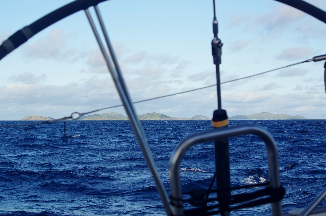 Le vent est repassé au sud-est, avec une quinzaine de nœuds : plutôt une bonne configuration pour nous qui partons vers l’ouest, pour une petite traversée d’une centaine de milles, surtout que la mer est quasi plate. Et nous profiterons d’une belle lune gibbeuse dans un ciel clair pour la nuit.