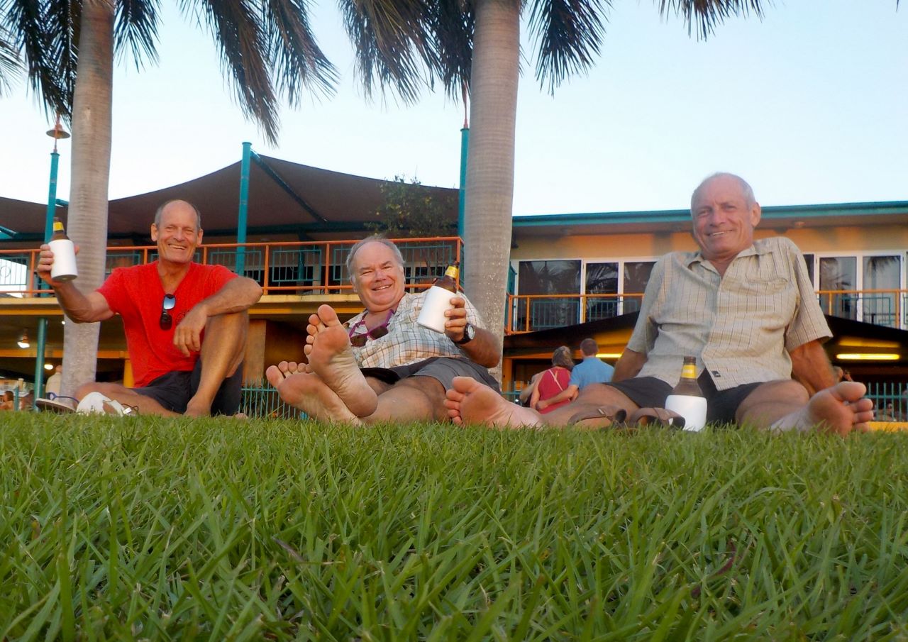 Nous rentrons en taxi avec nos emplettes, pour nous apercevoir que celui-ci est moins cher que le bus, à trois. Pour finir en beauté, Philippe nous invite à passer cette dernière soirée darwinienne dans un resto de la marina. Formule « All you can eat », mais pas mal du tout dans le genre. C’est bien la première fois qu’on peut reprendre des huîtres (excellentes !) autant qu’on veut ! Avec un petit riesling australien bien frais : il faut ce qu’il faut.