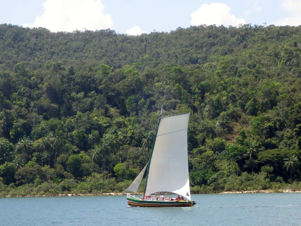 Puis vient le moment de remonter l’embouchure du Rio Parguaçu. Henry à la barre s’entend dire par son mentor chef de bord : « Tu enfiles l’embouchure ! »  » Ah Oui, c’est très intéressant ! Faut il le faire proprement ou au figuré ? ». C’est là que notre discours marin prend une autre dimension jusque là très concrète évitant de se perdre dans les méandres interprétatives . Mais nous n’en restions pas là.