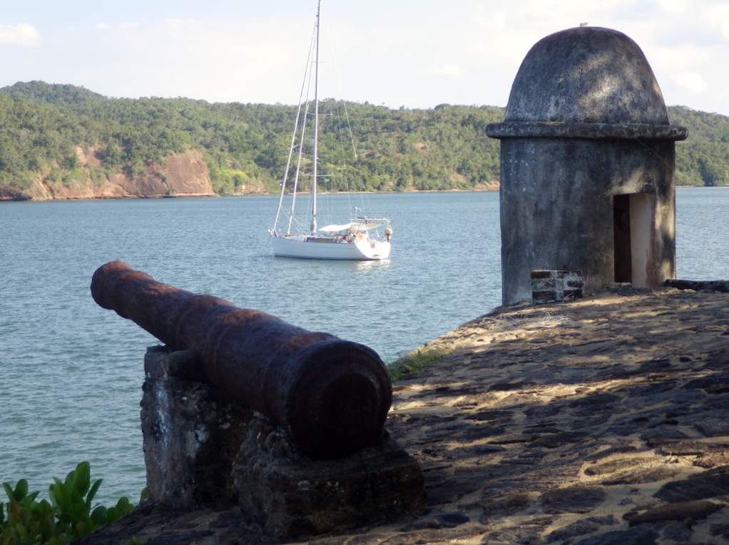 Heureusement, le Rio Paraguaçu nous offre de magnifiques paysages, sereins, un mouillage tranquille sous le fortin de la Ponta Salamina. Et pour une fois une rivière digne de ce nom : large, profonde (plus de 25m), nous offrant calme, luxe et sérénité !